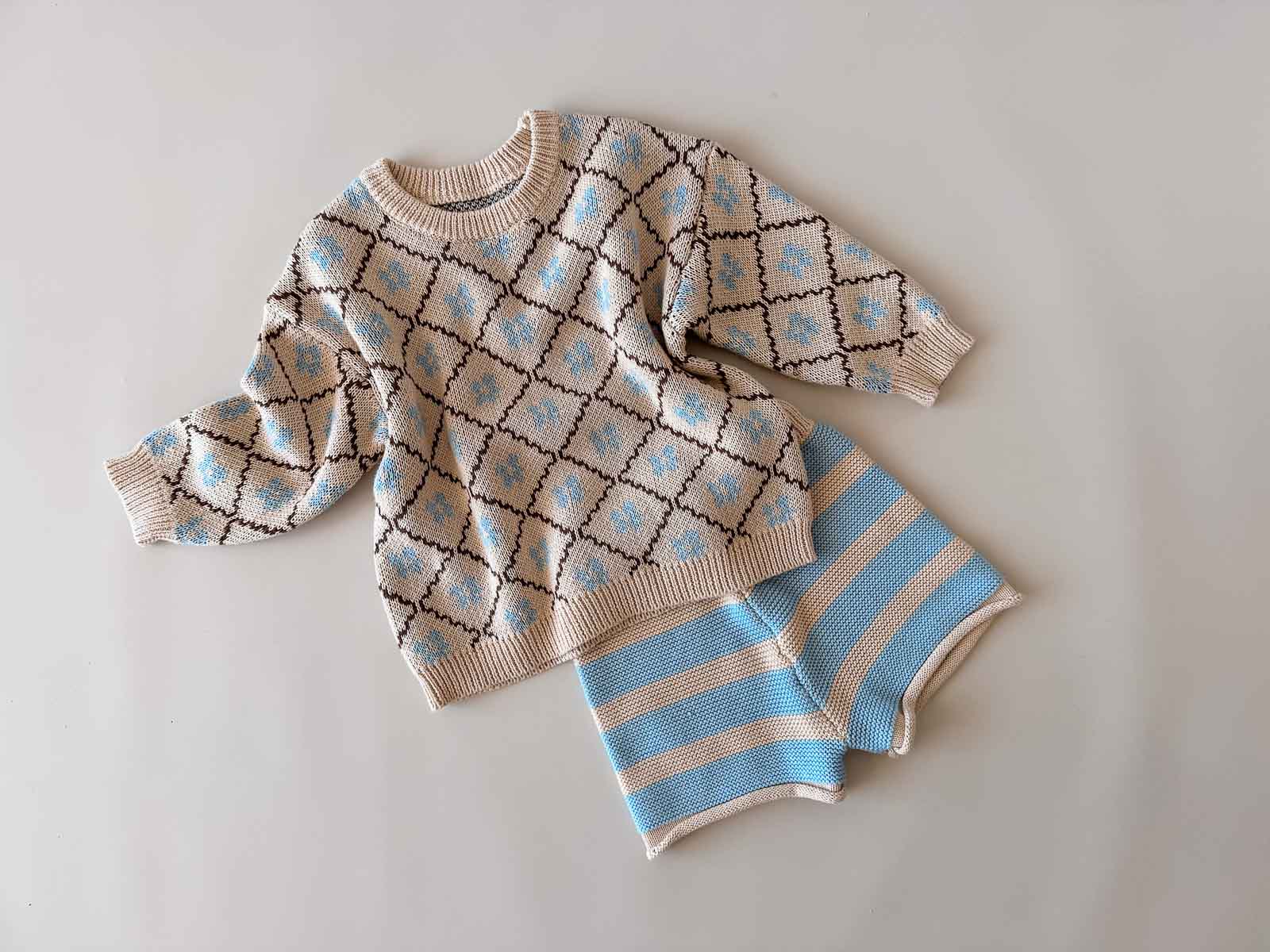 This cotton Jacquard knit jumper features our exclusive design sweet bluebells accented with a diamond wiggly trim border reminiscent of 70's wallpaper. This jumper boasts a drop shoulder and relaxed oversize fit, perfect for winter. Being 100% cotton ensures its still breathable.